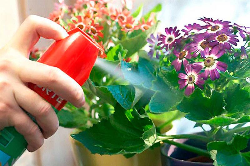 - Полейте смесью грунт в вазоне и опрыскайте все листья.