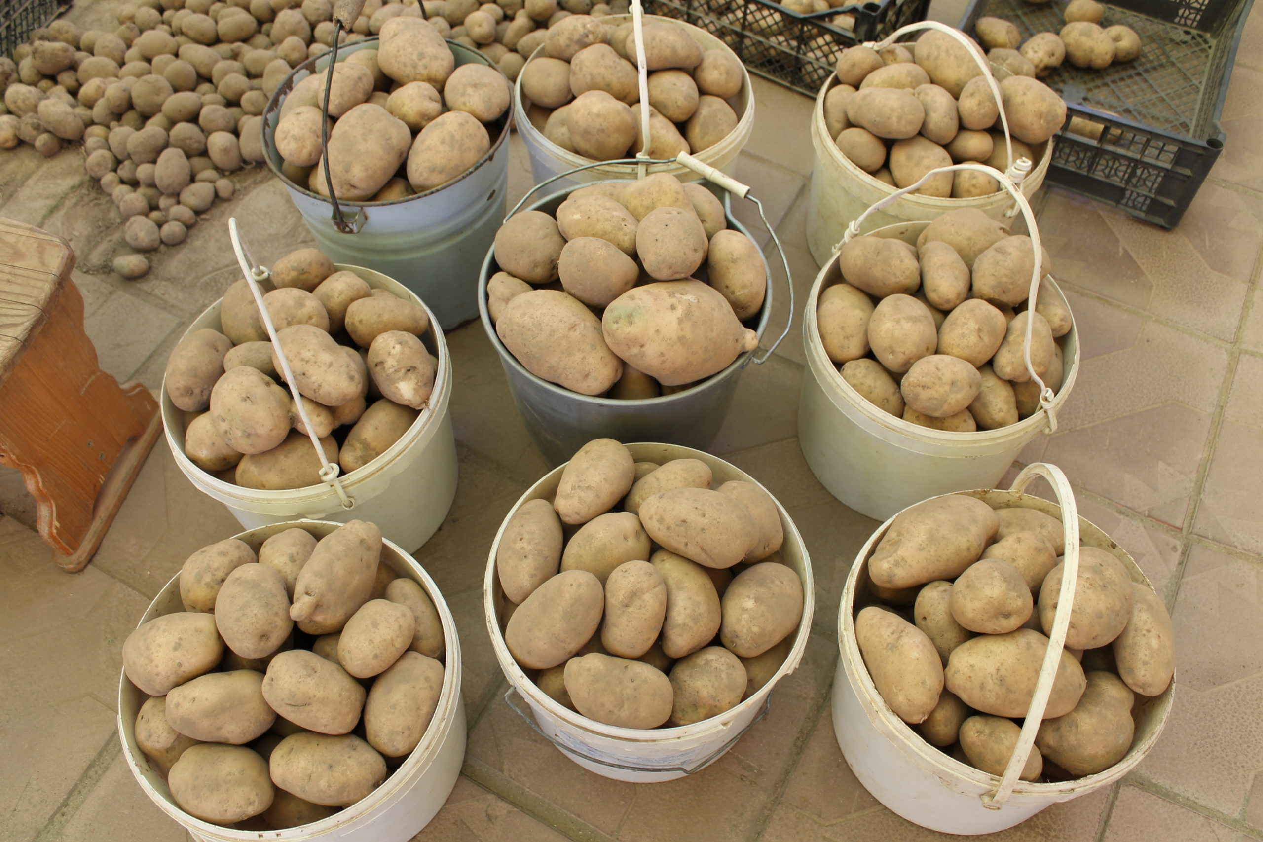 Итак, у нас есть картофель, выстилающий подвал, картофель, покрывающий пол сарая, картофель, заполняющий чердак сарая, и картофель, разбросанный по старому тракторному помещению. От стены до стены он плотно прилегает, но каким-то образом удалось найти необходимое количество места.